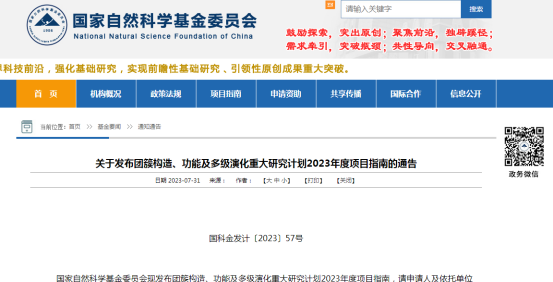关于发布团簇构造、功能及多级演化重大研究计划2023年度项目指南的通告