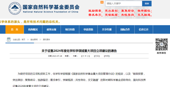 关于征集2024年度化学科学领域重大项目立项建议的通告