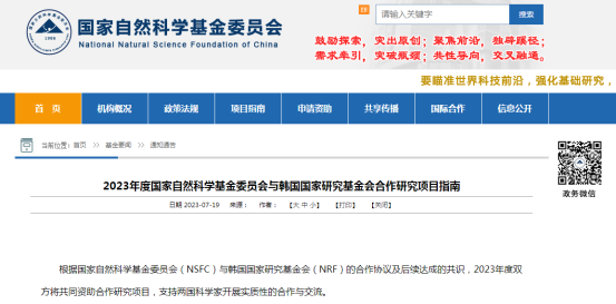 2023年度国家自然科学基金委员会与韩国国家研究基金会合作研究项目指南