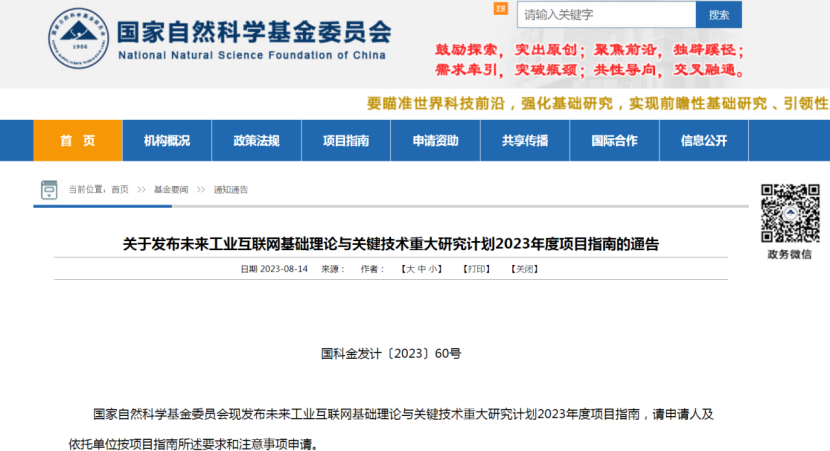 国家自然科学基金委员会现发布未来工业互联网基础理论与关键技术重大研究计划2023年度项目指南,请申请人及依托单位按项目指南所述要求和注意事项申请。