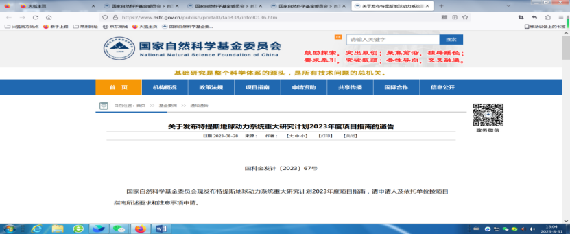 国家自然科学基金委员会现发布特提斯地球动力系统重大研究计划2023年度项目指南,请申请人及依托单位按项目指南所述要求和注意事项申请。
