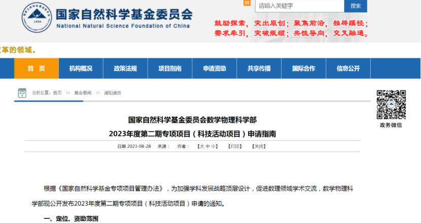 根据《国家自然科学基金专项项目管理办法》,为加强学科发展战略顶层设计,促进数理领域学术交流,数学物理科学部现公开发布2023年度第二期专项项目(科技活动项目)申请的通知。