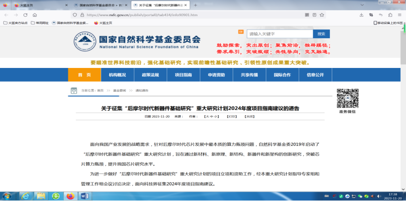 “后摩尔时代新器件基础研究”重大研究计划项目指南建议书