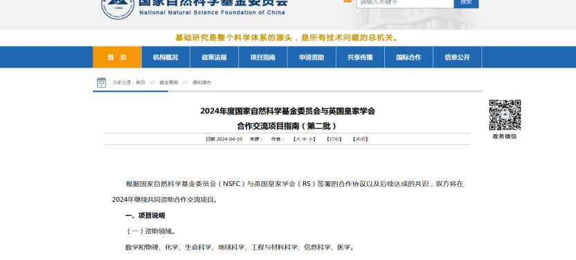 2024年度国家自然科学基金委员会与英国皇家学会