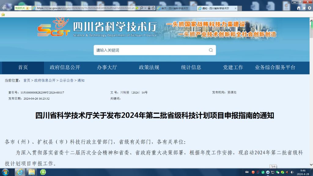 四川省科学技术厅关于发布2024年第二批省级科技计划