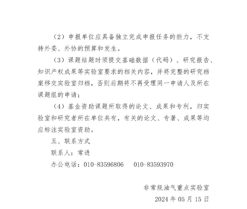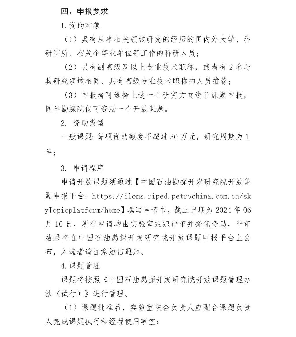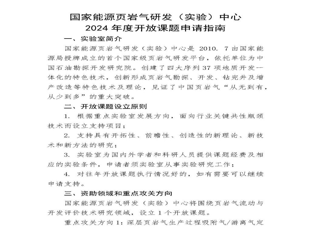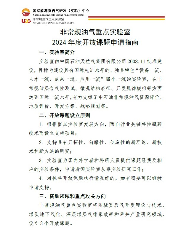 关于非常规油气重点实验室和国家能源页岩气研发(实验)中心2024年度开放课题申请指南