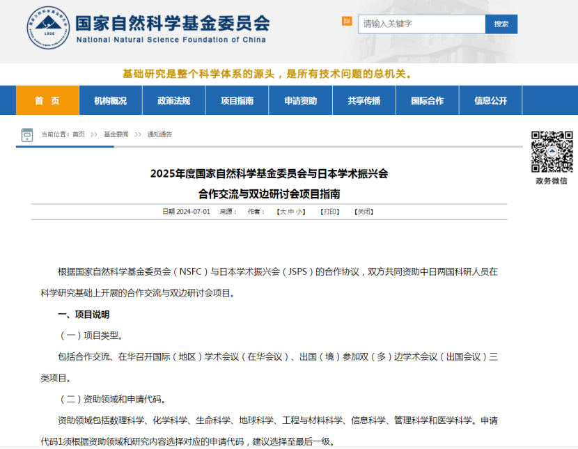 2025年度国家自然科学基金委员会与日本学术振兴会