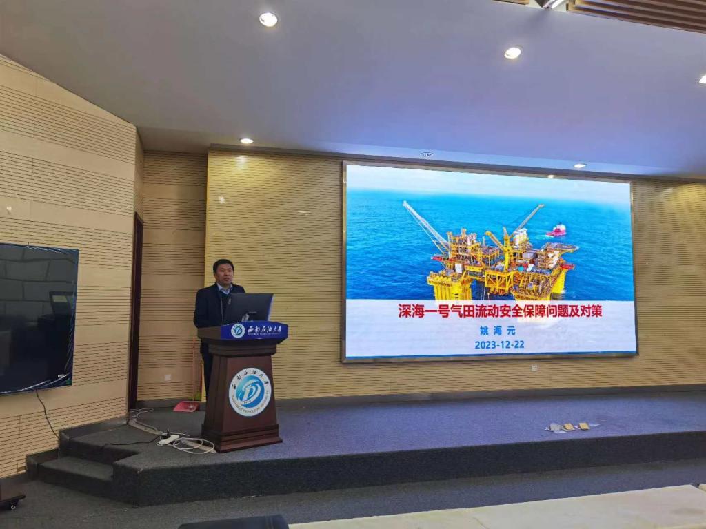 2023年12月22日下午,中海油研究总院流动安全首席工程师、教授级高工姚海元在我校明志楼B105会议室做了题为“深海一号气田流动安全保障问题及对策”的专题报告。