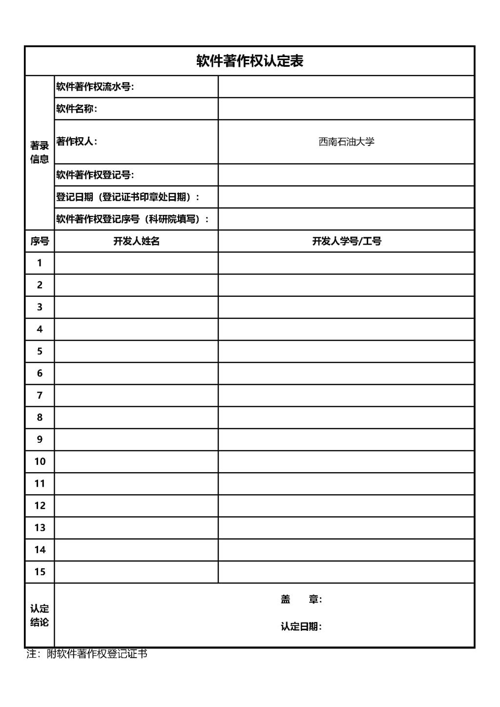 请下载附件填写“软件著作权认定表”与软件著作权登记证书一并打印后到科研院成果管理部(办公楼504室)办理认定。