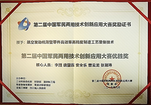 9月29日,第二届中国军民两用技术创新应用大赛决赛在成都结束,我校化学化工学院青年教师唐鋆磊博士及其团队与中国航发集团航空科技股份有限公司合作,攻克航空发动机薄壁零件高效率高精度制造工艺装备技术,达到国际先进水平,获得本次大赛优秀项目奖,唐鋆磊在获奖人中排名第二。这是我校研究人员首次在国家核心军工技术研究方面取得成绩,具有开创性意义。