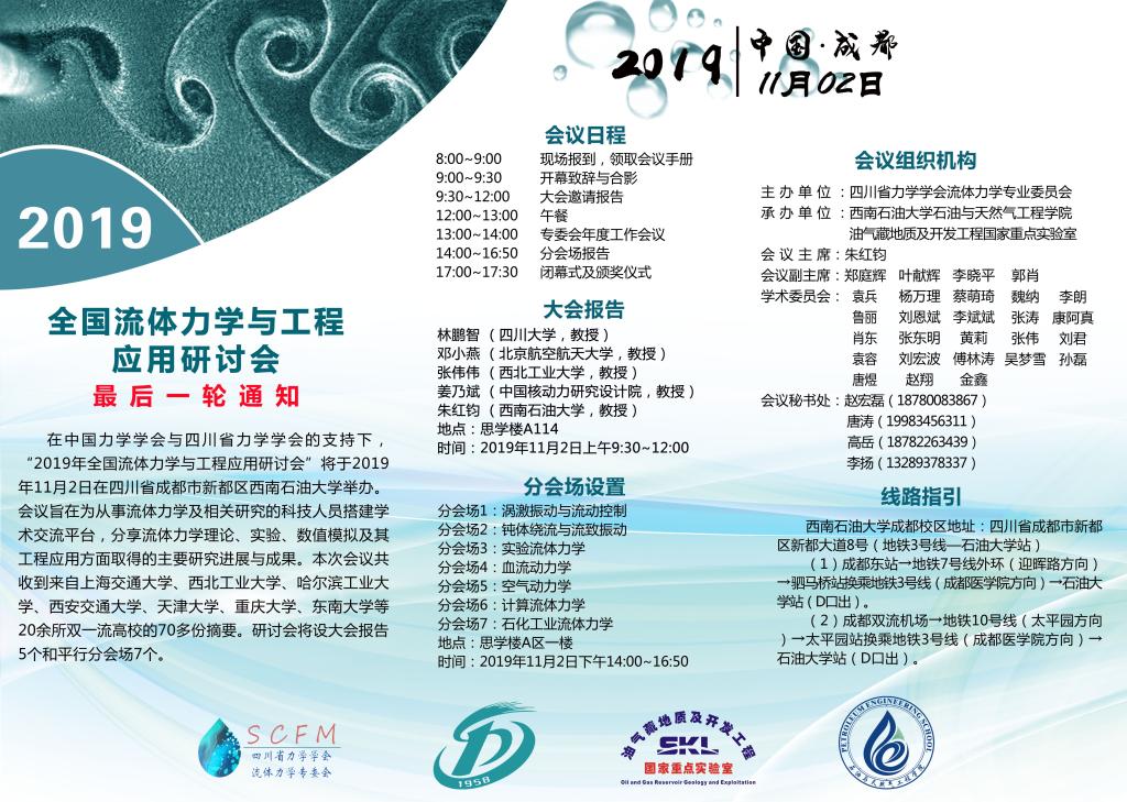 2019全国流体力学与工程应用研讨会最后一轮通知
