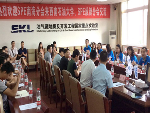 7月5日上午8:30,SPE南海分会(SPE South China Sea Section)项目部主席钟家欣、青年主席赵轩等一行16名石油工程师来我校交流访问,他们分别来自中海油、贝克休斯、雪佛龙、赫斯基等知名石油企业。石工院党委书记、院长、SPE成都分会主席郭建春教授,副院长、SPE成都分会学术部主席康毅力教授,副院长、SPE成都分会项目部主席郭肖教授,SPE成都分会秘书肖虎、教师代表王国华以及SPE学生分会代表参加了交流活动,会议由肖虎主持。