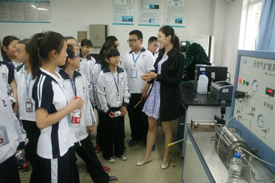 19号下午和20号上午,国家重点实验室迎来了金都中学初一两个班级共90余名学生前来参加活动。学生们首先参加了在国家重点实验室A403举办的科普讲座,实验室为学生们作题为《石油形成、开采》的科普讲座,结合动画、视频,深入浅出地讲解了石油的生成过程、形成状态、开采方式以及当今全球面临的石油危机,使学生们对石油的来源、石油工业上游领域有了初步的认识。随后,学生参观了岩石矿物组成微观分析实验室、非常规储层物性分析室、微观孔隙结构分析实验室等。学生们近距离接触到原油、天然气样品、岩心以及用于油气勘探的大精设备。最后,学生们来到逸夫楼C307钻井模拟室观看了石油钻井、开采场景模拟过程。参观过程中学生们被实验室新奇的设备所吸引,与老师积极互动,了解到中国每一滴石油都来之不易,石油资源不可再生,因而需要发展节能减排的科学生活方式。
