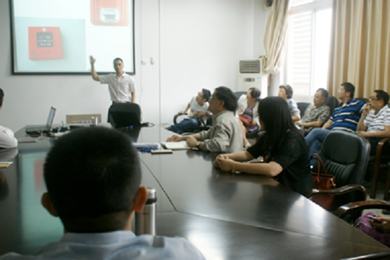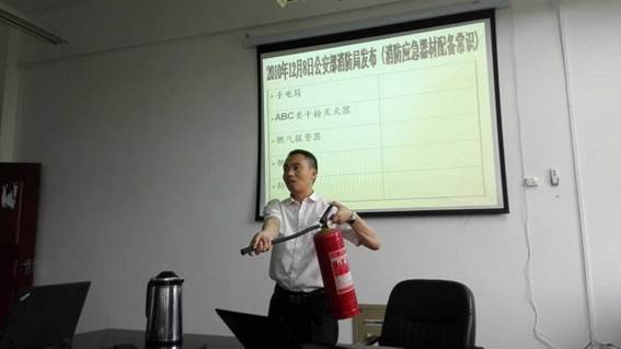 张广生主任首先结合近年来高校实验室发生的一系列火灾爆炸事故,分析了实验室可能存在的灾害隐患。随后为老师们讲解了手电筒、ABC类干粉灭火器、燃气报警器、烟感器、防烟面具等消防器材的用途及使用方法。结合具体火灾案例,告知了大家一些消防常识和误区,讲解了正确的火场逃生与自救方法,呼吁大家居安思危、防患于未然。
