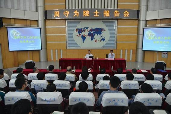 10:30,周守为院士在西华大学四教报告厅为300余名师生作了一场题为《海洋石油工业的特点和发展方向》的报告。西华大学校长刘清友主持报告会。