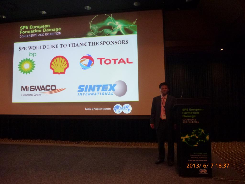 两年一度的SPE欧洲储层损害控制会议于2013年6月5-7日在荷兰诺德韦克大酒店召开,本室储层保护与欠平衡钻井理论及关键技术研究团队派出游利军副教授参加会议,并大会宣读了“利用屏蔽暂堵钻井液预防低渗裂缝性储层的井壁失稳与储层损害”的学术论文,同时张贴交流了论文“高渗透水平井钻井储层损害控制的新方法”。