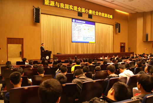为进一步加深学生了解能源发展的现状,正确认识我国的能源环境现状和安全策略,增强国家安全意识和石油人意识,由学校科研处、油气藏地质及开发工程国家重点实验室主办,石油工程学院承办的“能源与我国实现全面小康社会的能源战略”专题学术讲座,11月18日晚在图书馆学术报告厅举行,国重室郭小阳教授应邀作了精彩的学术报告。石工院大一、大二学生及部分研究生约500余人聆听了报告。报告会由石工院曾明友副书记主持。