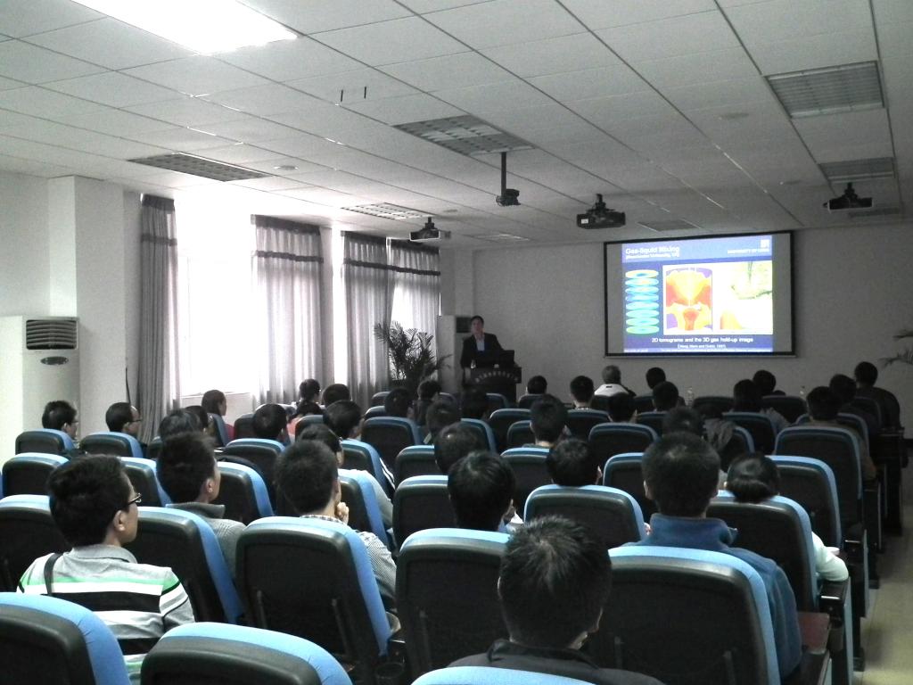 2012年10月9日,英国利兹大学过程环境和材料工程学院王密教授应邀来我室访问和学术交流。在国家重点实验室A403为我室师生做了题为《Multi-scale Measurement and Imaging for Process Application》的学术报告,部分师生对王教授介绍的层析成像等新技术很感兴趣,并就自己的科研课题和研究领域与王教授开展了积极讨论。