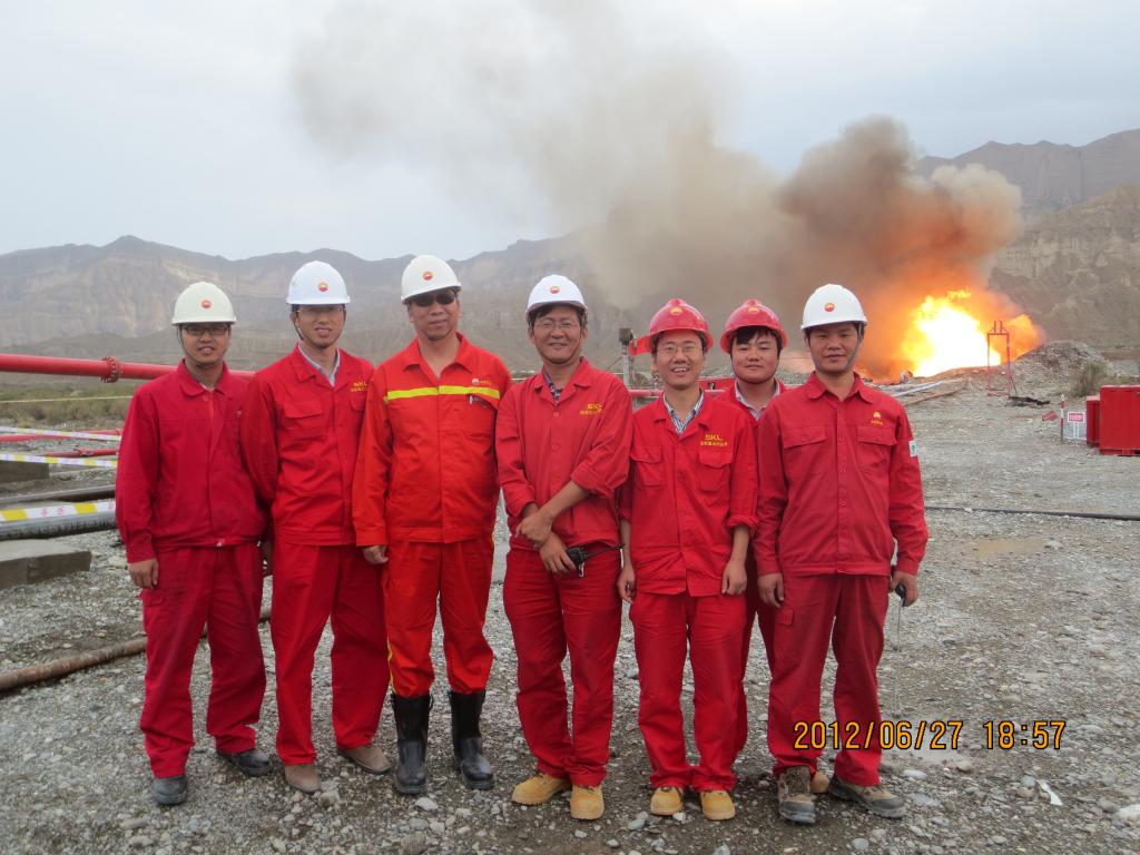 DX1井第二次安全钻开异常高压致密产层我室部分研究人员现场合影
