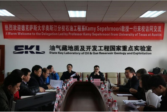 12月22日,美国德州大学奥斯汀分校研究生招生主任Kamy Sepehrnoori教授、苗继军博士以及德克萨斯农工大学石油工程系副研究员于伟博士一行3人到国家重点实验室举行研究生招生宣讲和学术交流。副校长郭建春、国际合作与交流处副处长戴磊、研究生院副院长杨雁及石油与天然气工程学院副院长康毅力、学院所(室、中心)负责人、教授委员会委员及教师代表参加了上述活动。