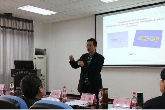 Kamy Sepehrnoori教授首先进行了德州大学奥斯汀分校研究生招生宣讲。他介绍了奥斯汀分校研究生招生政策、要求以及申请建议等内容,并希望相关学科研究生积极申请。他表示,奥斯汀分校也愿意接收教师进行访学交流。随后,于伟博士作了题为“非常规气藏产能模拟研究”学术报告。报告内容涉及非常规油气藏产能模拟及预测的一种新的半解析方法、新的三维数值模拟软件。半解析方法引入结点法和势叠加原理,可以高效处理成组裂缝分布。最后,Kamy Sepehrnoori教授与国家重点实验室相关单位领导及负责人就联合培养研究生、国家重点实验室教师到德州大学奥斯丁分校访学交流、科研合作等议题进行了洽谈。