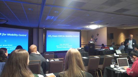 2018年10月15日-19日,我校博士研究生杨开睿、高海铭和硕士研究生陈亚丽赴美国科罗拉多州戈尔登市参加了2018年国际二氧化碳埋存与利用研讨会。本次会议由挪威石油研究院、美国国际能源集团、挪威NorCol清洁能源合作署和NorTex石油集团、美国科罗拉多矿业大学、挪威皇家驻休斯顿总领事馆联合主办。会议主题:Whole Value Chain Carbon Capture, Utilization and Storage Student Week,旨在促进全球各国间的碳减排合作研究。来自西南石油大学,挪威卑尔根大学,挪威石油研究院、斯塔凡格大学、奥斯陆大学,美国科罗拉多矿业大学、德克萨斯大学、休斯顿大学、路易斯安那大学、丹佛大学、亚利桑那州立大学、南加州大学、莱斯大学、新墨西哥理工大学,英国伦敦帝国学院,丹麦奥尔堡大学,巴西坎皮纳斯大学,日本东京大学以及美国国家海洋和大气管理局、日本三菱重工、挪威科技工业研究所、斯伦贝谢、印度Susteon公司等单位70余名专家与学生参加。
