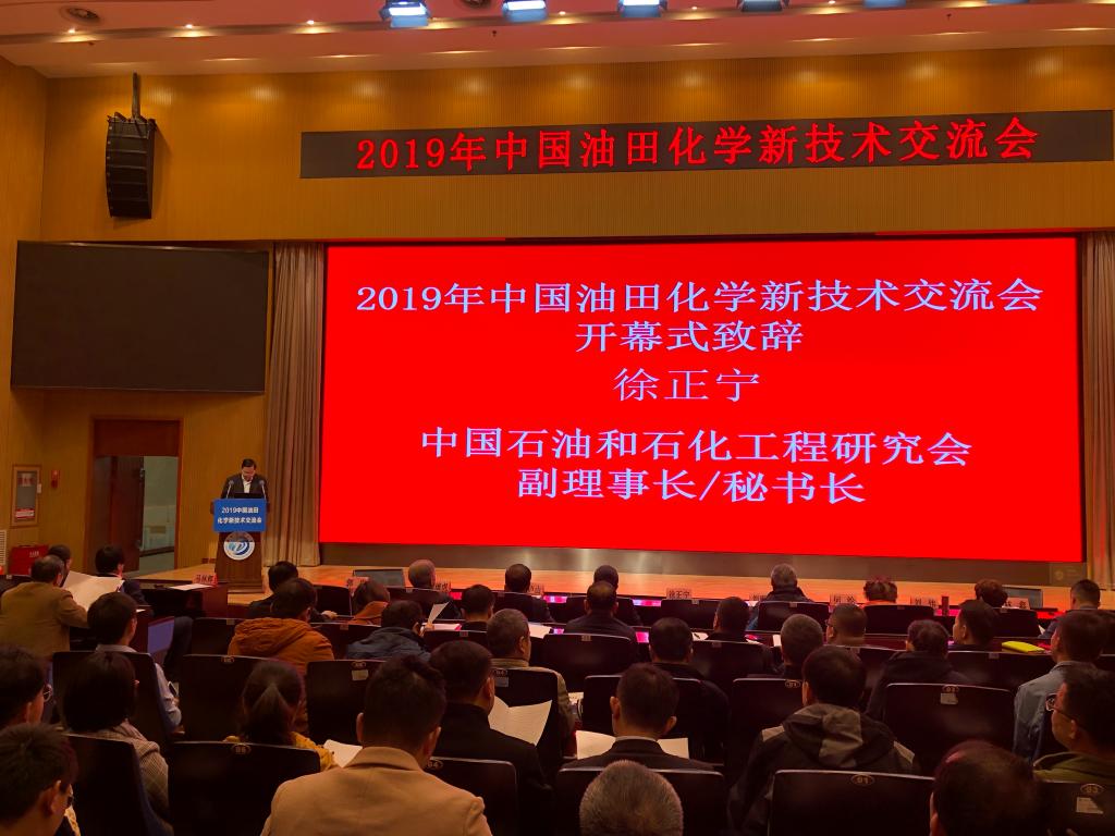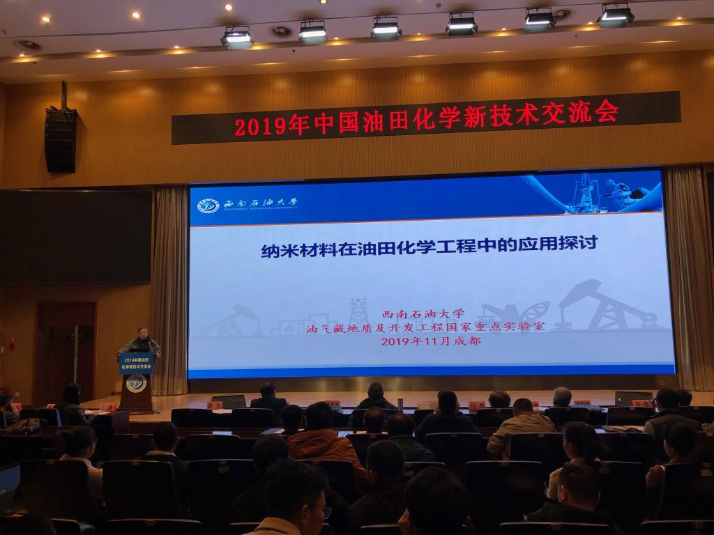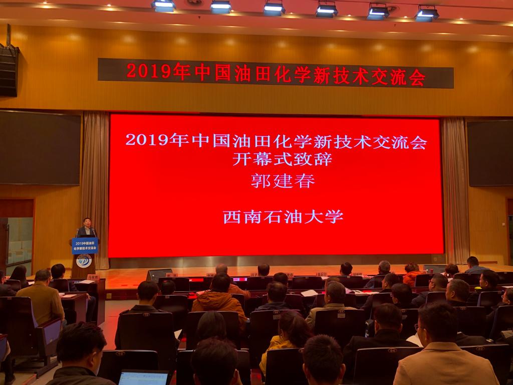 为促进我国油田化学新理论、新方法、新技术、新产品的交流与合作,由我校国家重点实验室与中国石油和石化工程研究会共同举办的2019年中国油田化学新技术交流会于11月19-20日在我校图书馆学术报告厅举行。来自中石油、中石化、中海油、延长油田,中国石油大学(北京)、东北石油大学、西安石油大学、长江大学、哈尔滨石油学院、大庆师范学院、西南石油大学等7所高校和40余企业单位的油田化学领域技术专家共400余人参加大会。中国工程院罗平亚院士、孙金声院士作了大会特邀报告,28位专家作了大会专题报告。副校长郭建春和中国石油和石化工程研究会副理事长徐正宁开幕式致辞。大会由中国石油和石化工程研究会马林辉副秘书长和油气藏地质及开发工程国家重点实验室副主任郭肖共同主持。