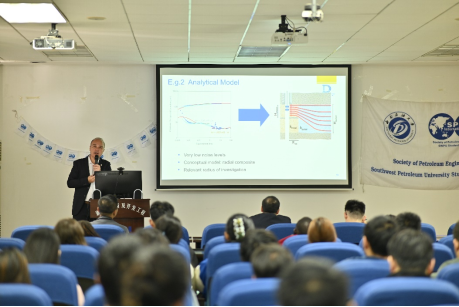 SPE在全球共有202个分部,SPE成都分部(SPE Chengdu Section)前身是2015年成立的SPE成都分会。2019年经过申请和遴选,SPE成都分会(Chengdu Study Group)晋升至SPE成都分部(SPE Chengdu Section),获SPE全球杰出分部奖(2019年全球仅有10个分部获此殊荣)和SPE全球优秀分部奖。SPE杰出演讲者项目为各SPE分部推荐油气领域知名专家作为杰出演讲者,举办讲座,为石油工程师、科研人员以及能源相关领域专家搭建全球性的学术交流和创新的平台。每年12月,各分部提交下一年度杰出演讲讲座计划并确定演讲者。疫情后,SPE成都分部郭肖主席组织多次会议研讨活动规划和分部发展,于2023年5月和10月分别邀请沙特国家石油公司(阿美)美国波士顿研究中心王玮博士和斯伦贝谢公司(SLB)油藏领域总监François-Xavier Dubost,成功举办两场线下SPE杰出演讲讲座,圆满完成本年度计划,进一步推动了我校国际交流,宣传了我校石油文化,展示了我校油气领域的最新技术。