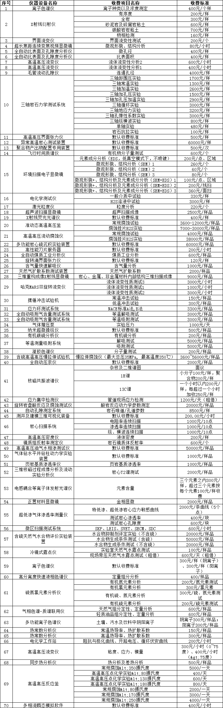 收费标准