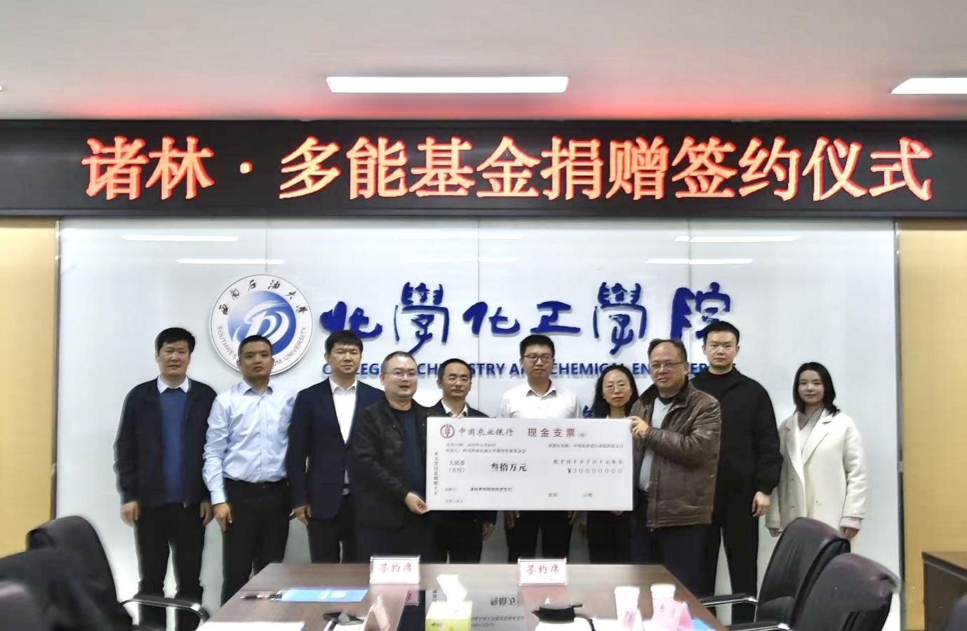 11月21日,荣休教师诸林教授联合弟子捐赠的“诸林·多能基金”签约仪式在化工院举行。该基金第一期捐赠周期为三年,每年捐赠金额 10 万元,用于定向支持化工院学生创新创业、生涯发展与师生综合能力提升。