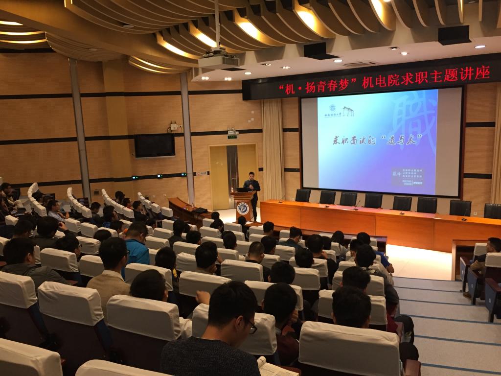 2017年10月11日晚7点,机电工程学院于思学楼A114主办了一场“机·扬青春梦”求职主题讲座:求职面试的“道与术”。特邀西南财经大学就业指导中心教师罗锋老师为同学们讲授在求职面试的过程当中应该注意的问题。