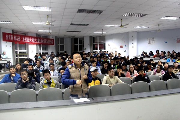 就如何加强创业团队建设,彭东源谈到,作为一名创业者首先要有独特的人格魅力,吸引身边和你有共同创业梦想的人,让他们主动向你靠拢,愿意为了共同的创业目标与你同甘共苦。其次要学会设身处地为他人着想,要关心、帮助自己团队的伙伴。这样才能管理好一个团队,才能让身边的人才愿意帮助你,为你出谋划策。讲座接近尾声时,彭东源寄语校区创业青年学生,在大学学习期间,要以自己的学业为重,学好自己的专业文化知识,平时也要多涉猎有关于创业方面的书籍,做思考总结分析,打牢文化理论基础。