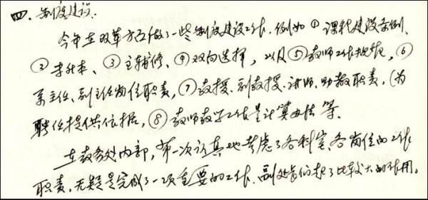 由于对教研室主任的定位不对,使得很多工作无法落实到位。比如我曾经有个想法,毕业论文不是有个英文翻译吗,是否可以通过检查教师是不是认真看过这个翻译,来看教师的教学态度。我就想把毕业论文的英文翻译集中起来全部检查一遍,这个教务处没法查,只能是各个学院和外语学院的老师来查,我本来是想教研室主任多负责一点这方面的事儿,但你总得给点津贴嘛,但是给多少钱?一学期只给三十块钱,就连这么少都还要扯皮,这就没法了。