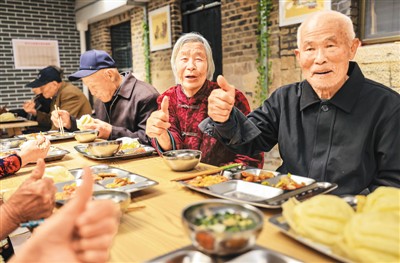 近年来,山东省荣成市建立“信用管理+志愿服务+暖心食堂”模式,打造“暖心食堂”。目前已开办运营363家,覆盖全市46%的村居,免费给1.2万名80周岁以上农村老人提供午餐。图为老人在夏庄镇甲夼马家村“暖心食堂”就餐。 李信君摄(新华社发) |