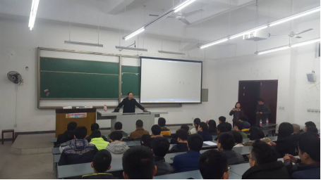 为更好地促进学生做好职业规划、积极主动地参与到就业创业中,2017年1月9日晚上20:00,理学院邀请到深圳富士康集团研发部负责人郭庆良在明理楼A101召开宣讲会,会议由理学院党委副书记彭永清主持,参加会议的还有深圳富士康集团深圳分公司和成都分公司的相关工作人员以及理学院2013级和2014级全体学生及辅导员老师。