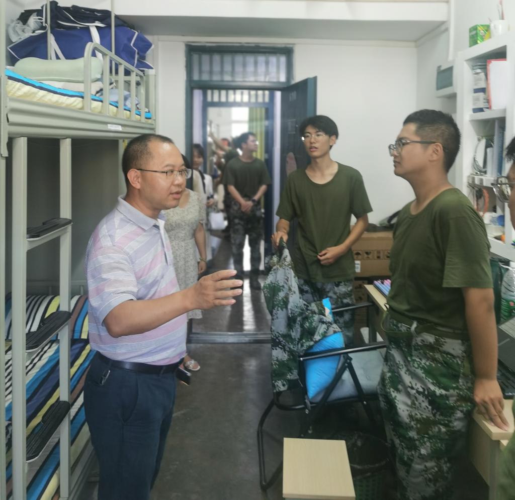 8月30日下午,学院副院长税正伟率队一行前往学生宿舍,走访看望了学院在南充校区的2022级学生军训情况。学院综合办公室主任冯琼、学生办公室副主任薛静、光电教研室主任侯俊勇、电科教研室主任武新慧、2022级辅导员刘培参加了活动。