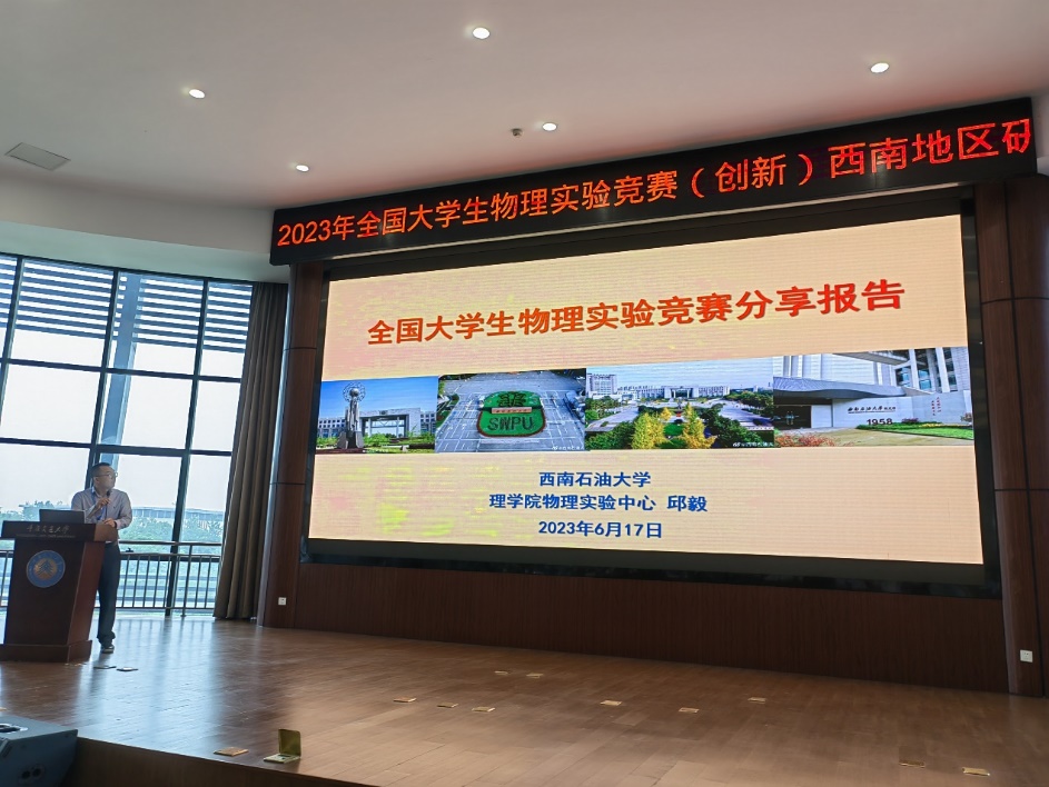 6月16日至18日,2023年全国大学生物理实验竞赛(创新)西南地区研讨暨西南地区实验物理年会在重庆江津召开。理学院党委书记刘廷平带队,“双带头人”大学物理党支部书记伍振海、物理实验中心主任邱毅参加会议。邱毅老师受邀为大会作了“全国大学生物理实验竞赛分享报告”。