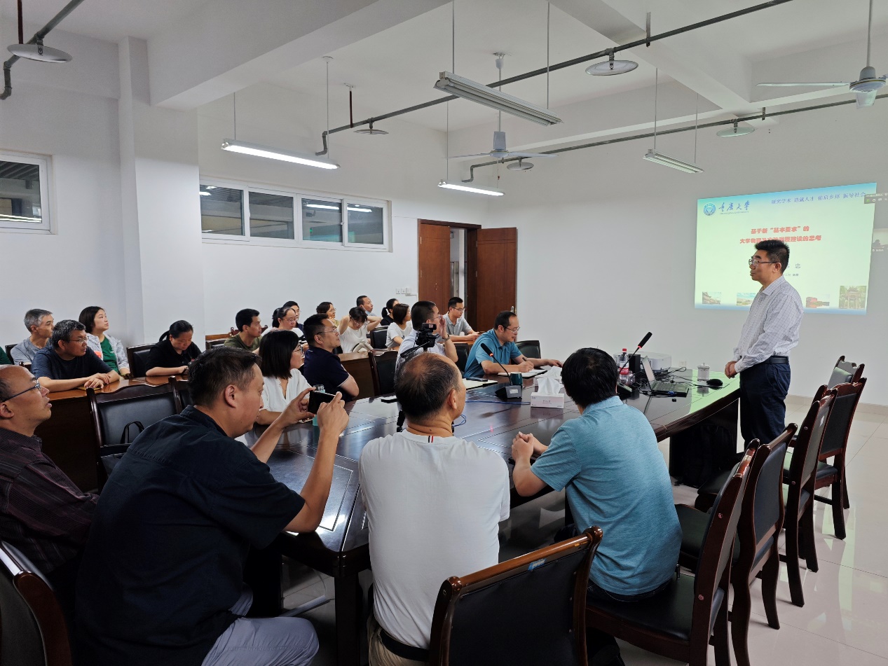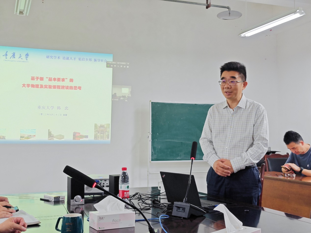 9月22日,重庆大学物理学院党委书记韩忠教授应邀来我校作了题为:“基于新‘基本要求’的大学物理及实验课程建设的思考”的学术报告。本次报告由理学院、科学技术发展研究院联合主办。会议由理学院党委书记刘廷平教授主持,理学院副院长李玲娜、闵超出席了会议,成都校区物理学科全体教师现场、南充校区物理学科教师线上聆听了报告。