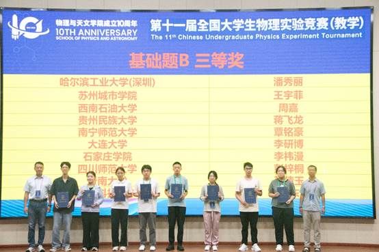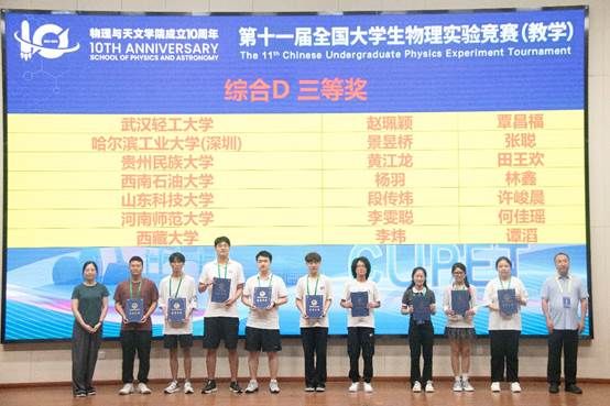 7月20至7月24日,第十一届全国大学生物理实验竞赛(教学)在中山大学广州校区和珠海校区圆满落幕。我校派出3个代表队共4名同学参加珠海校区的比赛,荣获全国一等奖1项、三等奖2项,学校获优委组织奖,实现了我校参加该赛事以来的再次突破。