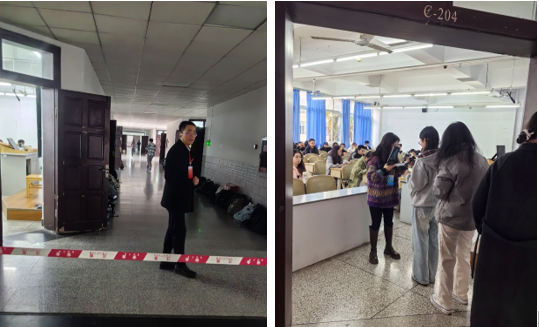 考点共设置14个标准化考场,均严格依照国家考试规范统一布置,全面保障考试的严肃性与公平性。考试期间,校内外近500名考生顺利应考,理学院领导班子全程巡考,确保考试组织严谨、秩序井然,圆满完成首次考点承办任务。
