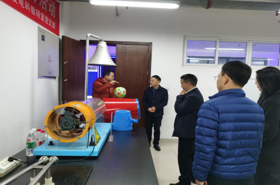 调研期间,毛大付一行实地参观了基地各主题展区,观摩并体验了一系列设计精巧、富有启发性的物理演示装置与互动项目,并与现场讲解教师周云旭进行交流,详细询问科普展示内容和受众反馈情况。