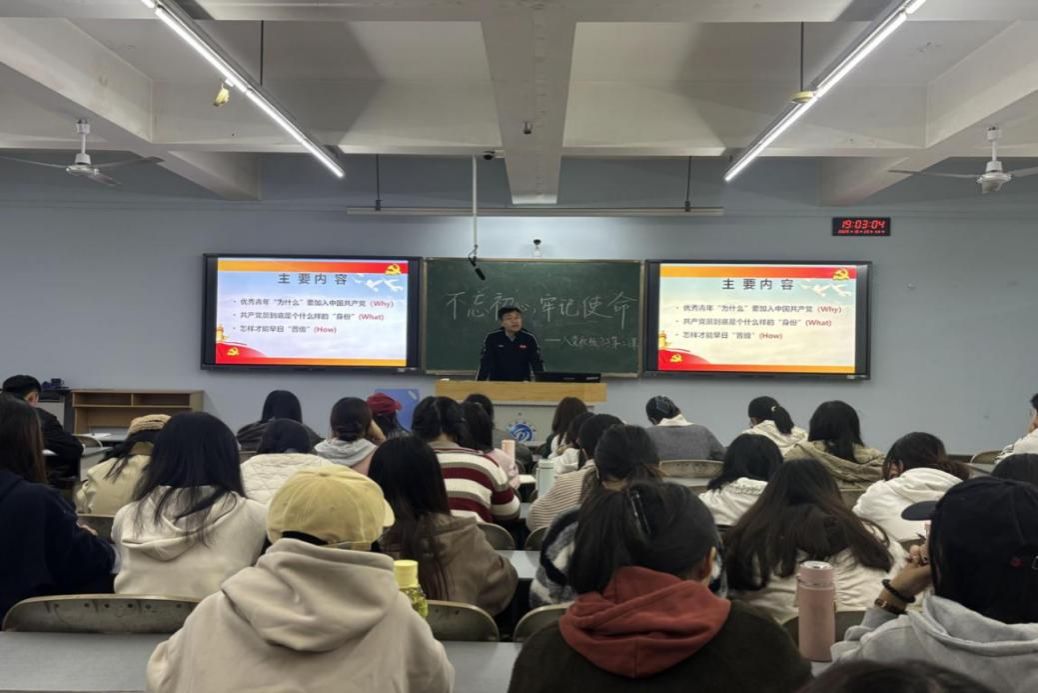 为引导入党积极分子进一步加深对党的认识,端正入党动机,提升思想觉悟,10月23日19时,理学院、马克思主义学院、体育学院联合开展的2025年秋季学期入党积极分子培训班第二讲在思学楼C309教室开展,体育学院党委副书记、纪委书记温登峰应邀为全体学员作了题为“不忘初心、牢记使命”专题讲座。