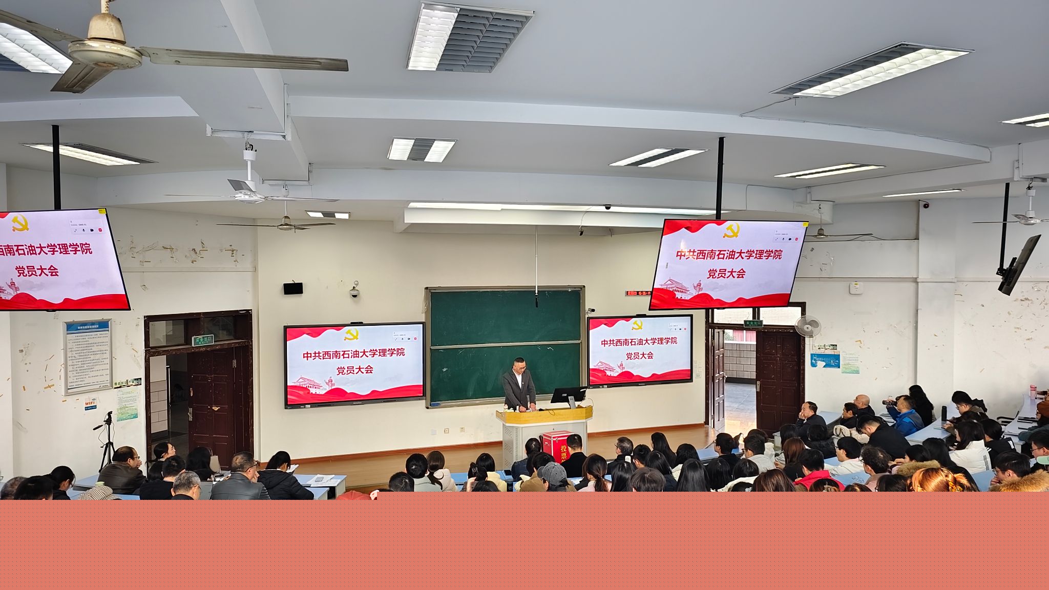 王书记向师生党员报告出席本次大会的党员情况,有选举权的到会人数超过应到会具有选举权人数的五分之四,会议有效。大会通过了《理学院党委出席中国共产党西南石油大学第三次党员代表大会代表选举办法》、监票人、计票人名单以及代表候选人名单,与会正式党员经过慎重思考,认真填写了选票,并在监票人的监督下投出了自己庄严的一票。