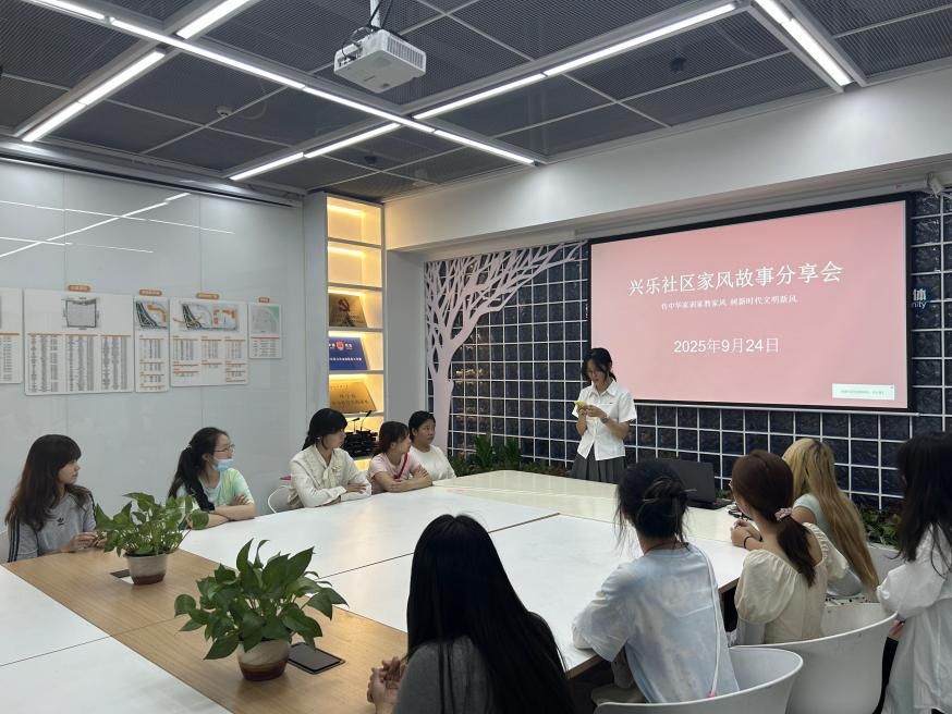 2025年9月24日,兴乐社区“家风家训故事会”温情举办。活动以“家和万事兴”与“孝道”为主题,由社区活动负责人龙丹主持,理学院青志协同学们倾情分享,共同弘扬传统家庭美德,传递社区正能量。