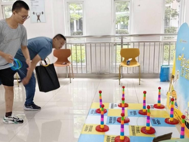 淡蓝色的特制地垫上,套圈目标整齐排列,每个目标都承载着对新生大学生活的美好期许:既有“数分高代,全部拿下”“从0到1,完成创新项目”的学业鼓励,也有“拥抱团队,挚友+1”的社交指引,还有“心态王者,从容应对压力”“坚持运动,以体强心”等身心关怀,为新生大学生涯起步注入积极动力。