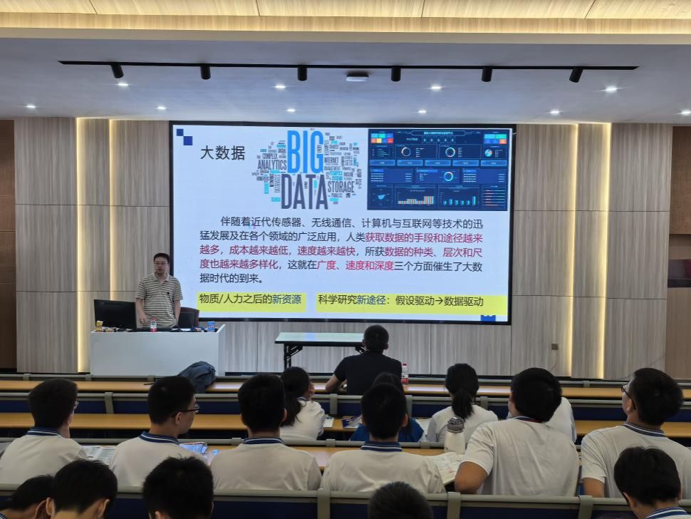 签约仪式后,周彬教授为两校学生带来 “信息化、智能化与科学计算” 专题讲座。他以三次工业革命为脉络,结合大数据、人工智能等前沿技术,通过生动案例展示智能机器人的发展历程,引导学生思考未来社会智能化场景下的学科融合与创新机遇。讲座逻辑清晰、深入浅出,现场掌声不断,激发了学生对科学探索的浓厚兴趣。