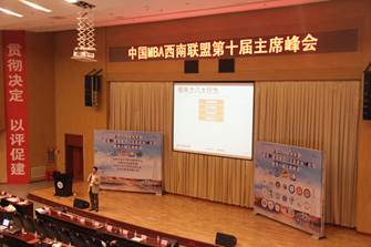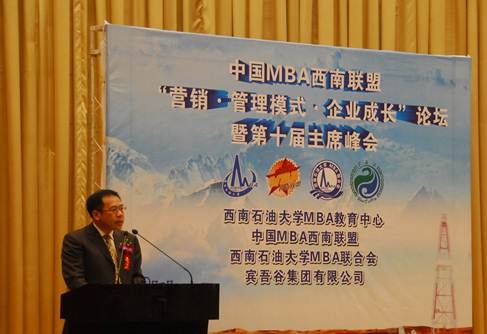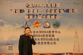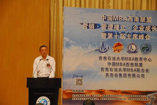 2015年4月18日至19日,中国MBA西南联盟“营销、管理模式、企业成长”论坛暨第十届主席峰会在西南石油大学学术报告厅隆重召开,来自云、贵、川、渝地区18所高校的西南联盟成员单位代表、MBA华南及中部联盟嘉宾、部分赞助单位代表120余人参会,西南石油大学副厅级调研员何沙教授、经管院党委书记任皓、中国MBA联盟主席范虎城、西南联盟荣誉主席那灿东等领导和嘉宾到会并致辞,对论坛和峰会的胜利开幕表示祝贺。