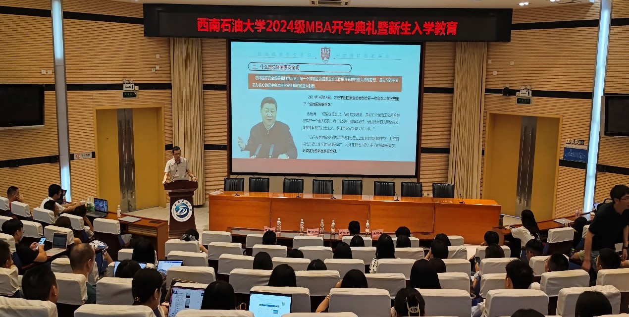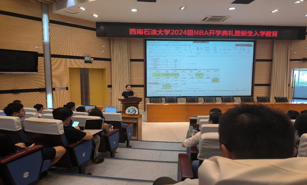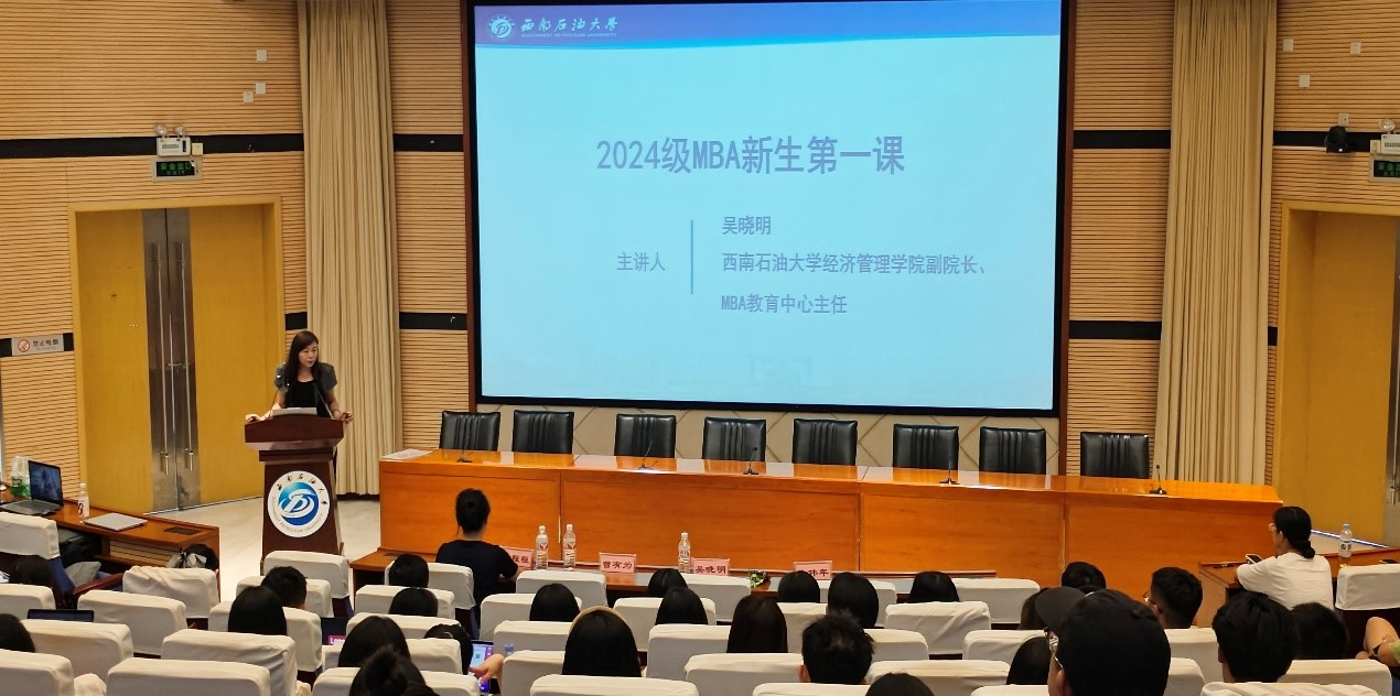 紧接着经济管理学院副院长、MBA教育中心主任吴晓明对同学们的到来表示欢迎,感谢大家选择西南石油大学MBA,并对MBA学员提出了新要求,讲述了学位论文的重要性。让学员们明白MBA不仅需要学习知识,还需要注重综合能力的提高并希望学员们从今天开始需要开启新的征程,需要有更多的责任与担当,为自己的梦想而奋斗,立志“为祖国加油,为民族争气”。