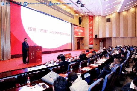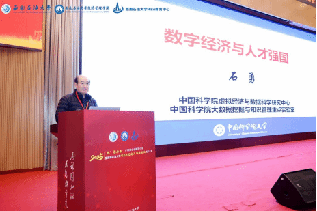 会议分为大会报告与平行研讨会。上午的报告由经济管理学院院长郑小强主持。中国科学院大学讲席教授、国务院参事石勇以“数字经济与人才强国”为题,分享了数字经济的发展现状以及发展数字经济的建议与思考。成都理工大学副校长郭强分享“学科融合、产教融合、校企融合”的经管人才培养路径。广汉市能之行科技有限公司总经理张超讲述“从‘聚能’到‘能聚’的校企协同价值”。