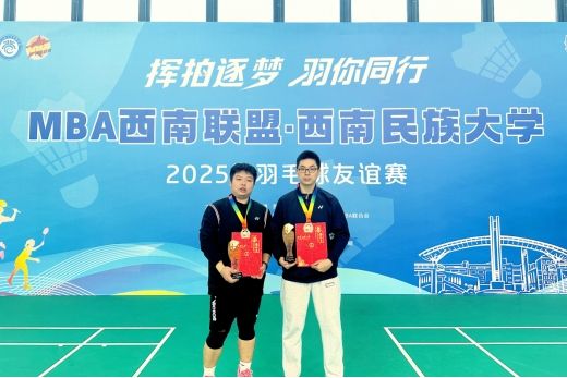 2025年11月16日,2025年MBA西南联盟•西南民族大学“挥拍逐梦·‘羽’你同行”羽毛球友谊赛在西南民族大学航空港校区圆满落幕。我校MBA石光羽行队代表西南石油大学出征,队员王佳木、李益民组成的男双组合斩获男子双打季军。